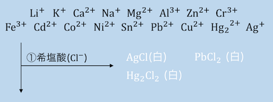 Pb2+、Ag+、Hg22+を沈殿させます。