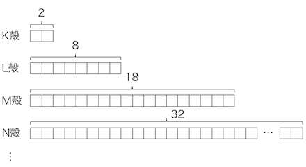 K殻、L殻、M殻、…という電子の「部屋」に、
