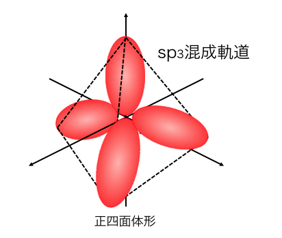 メタン、ダイヤモンドなどはsp3混成軌道による結合です。