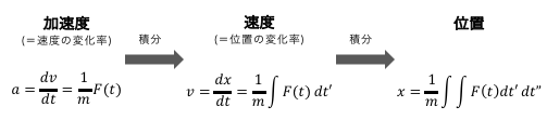 速度は、位置の変化率=位置\(x\)の時間微分、
